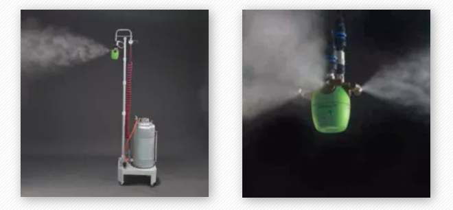 通過空壓機(jī)將洗消劑霧化,形成幹霧狀態。一台AE-KIT可以(yǐ)解決800立方米以上的空間範圍幹霧噴灑。適(shì)合於各類工廠環境(jìng)的大麵積洗消和空氣濕度調節。